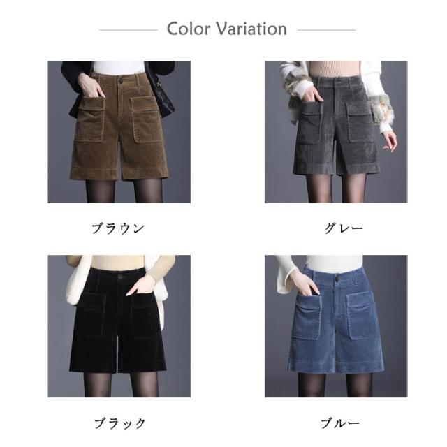 美脚 ハーフパンツ 秋冬 コーデュロイ コーデュロイ ショートパンツ 膝上丈 ワイドパンツ レディース 短パン ハイウエスト 膝上 パンツ ポケット付き ゆったり 5分丈 着やせ キレイめ