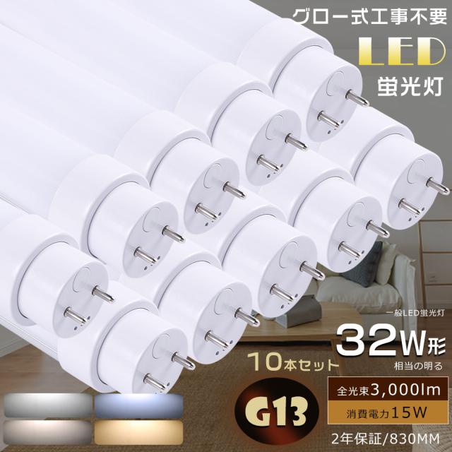 驚きの価格・10本入り LED蛍光灯 32W形 直管 83CM グロー式LED蛍光灯 直管LEDランプ 830MM グロー式専用工事不要 直管型LED蛍光灯 LED蛍光管直管 32W型 LED直管蛍光灯 32W形 FL32ss 消費電力15W 3000lm 直管LED照明器具 32形 LED蛍光灯 直管 32型 G13口金 天井照明 店舗 学校