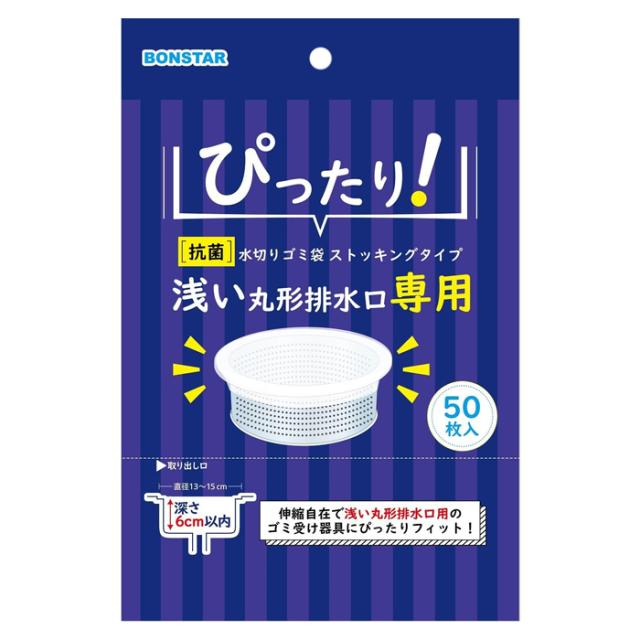 [ボンスター]ぴったり 水切りゴミ袋 ストッキングタイプ 浅い丸型 排水口用 50枚 (抗菌 水切りネット キッチン用品)