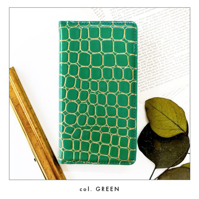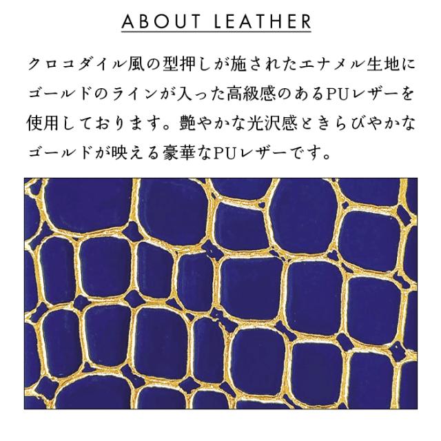 クロコダイル風の型押しが施されたエナメル生地に、