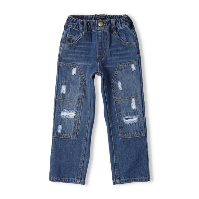 10オンスのストレッチデニムのダメージデニムパンツ、長ズボン。ダメージ感やブラストが本格的な仕上がりです。かっこよく着こなせるアイテム。同じデザインのスクールサイズ(140150160cm)はV15005になります。【アイテム】シンプル ベーシック 無地 カジュアル お洒落 オシャレ かっこいい かわいい 可愛い 普段着 お外着 お外遊び着 デイリーウェア お出かけ着 ロング丈 長丈 長ズボン フル丈 ボトムス 子ども こども 男児 男の子 ボーイズ キッズ ベビーサイズ トドラーサイズ 幼稚園 保育園 小学校 通園 通学 小学生 2025年春夏物新作 丸高衣料 ブルー ネイビー 紺色 ダディオダディ ジーンズ ジーパン Gパン