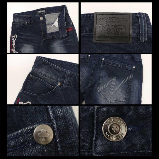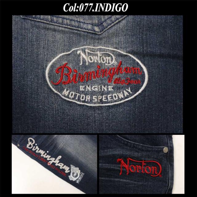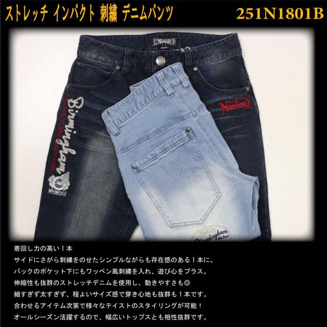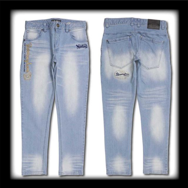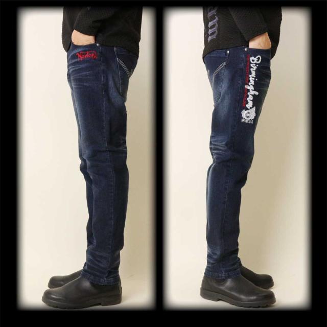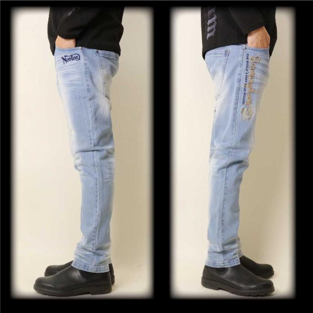 Norton ノートン 服 デニム ジーンズ 251N1801B ストレッチ インパクト 刺繍 デニムパンツ ワッペン風刺繍 メンズ アメカジ バイカー