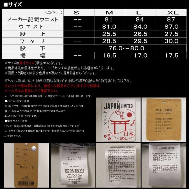 (ヌードサイズ表記とは数値が違いますので、お手持ちのパンツと測り比べてご注文ください。)
