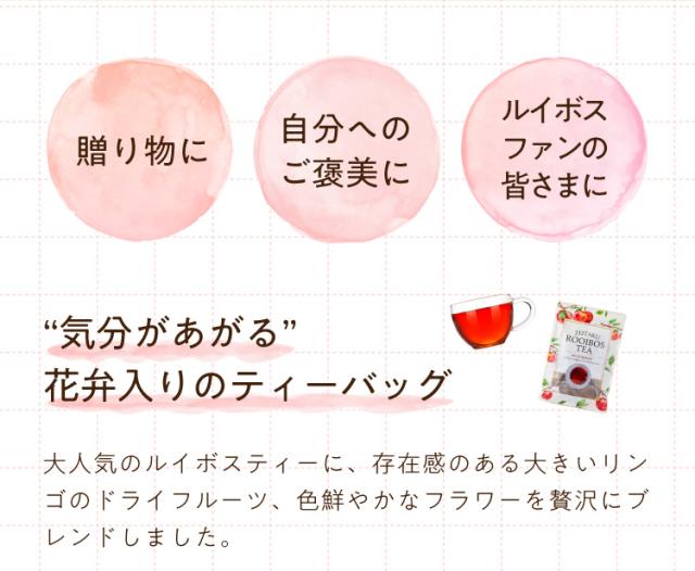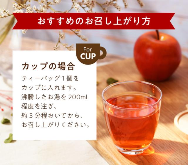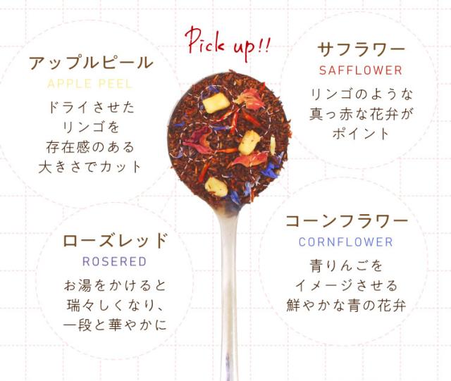 ルイボス(南アフリカ共和国)、アップルピール(タンザニア)、コーンフラワー(アルバニア)、サフラワー(中国)、ローズレッド(パキスタン)/香料 ■アレルギー物質/りんご |