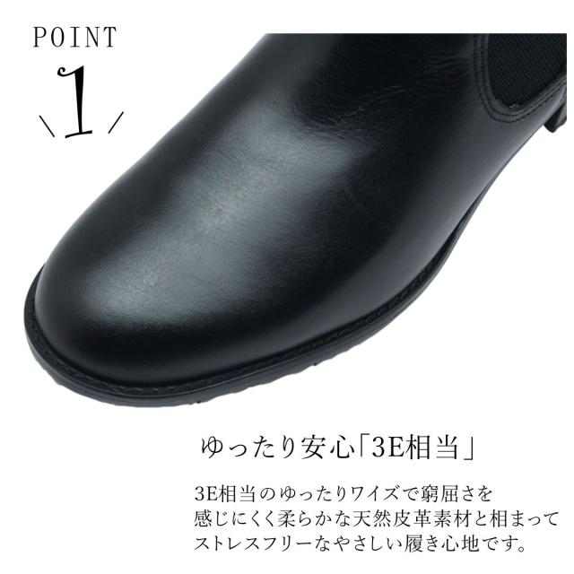 ユキコ キミジマ レディース レザー ショートブーツ 9224 サイドゴア 3E 防滑 本革 ベルト ブラック Yukiko Kimijima