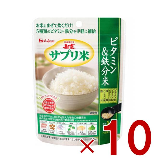 【23-29日限定 タイムセール】ハウス 新玄 サプリ米 ビタミン&鉄分米 50g 5種のビタミン 鉄分 葉酸 栄養強化米 ビタミン強化米 10個