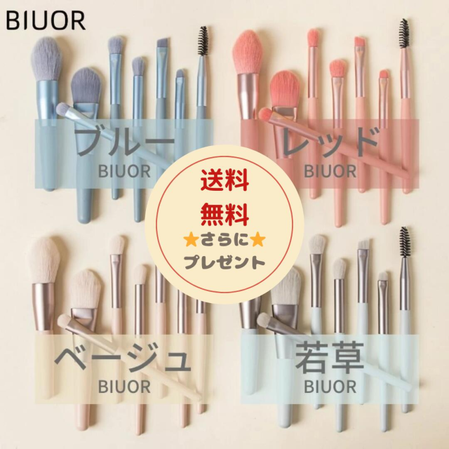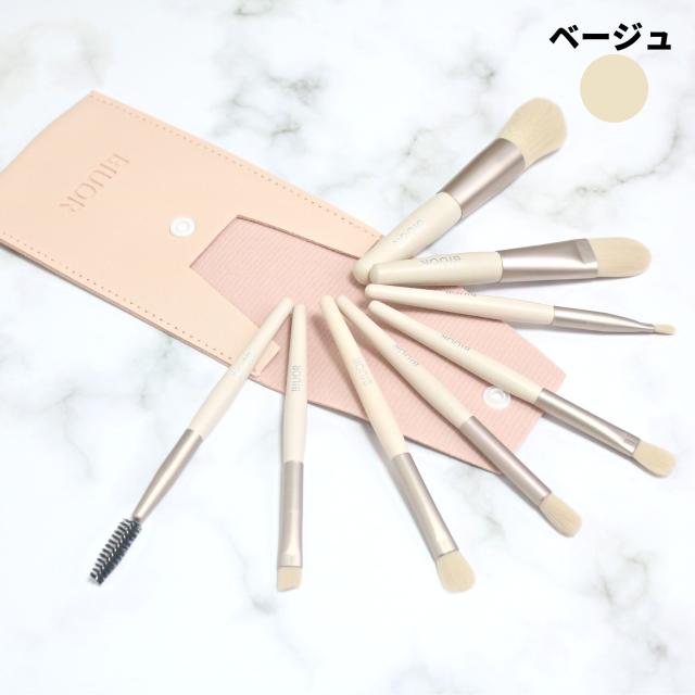 メイクブラシ8本+専用ポーチ1つ+BIUOR高品質メイクアップスポンジ1つ(色種類お任せ)