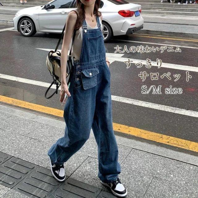サロペット デニム レディース オーバーオール オールインワン ジーンズ デニムパンツ パンツ 大人 コーデ つなぎ ゆったり ワイド ストレート 大人 きれいめカ