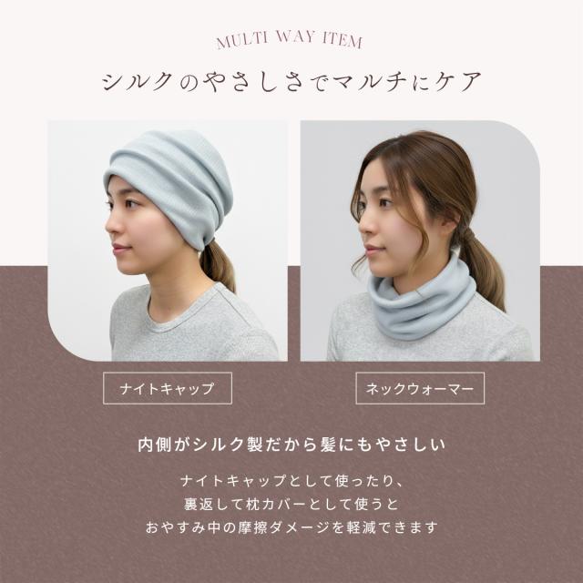 内側がシルクだから頭にすっぽり被れば、ナイトキャップとして使用可能