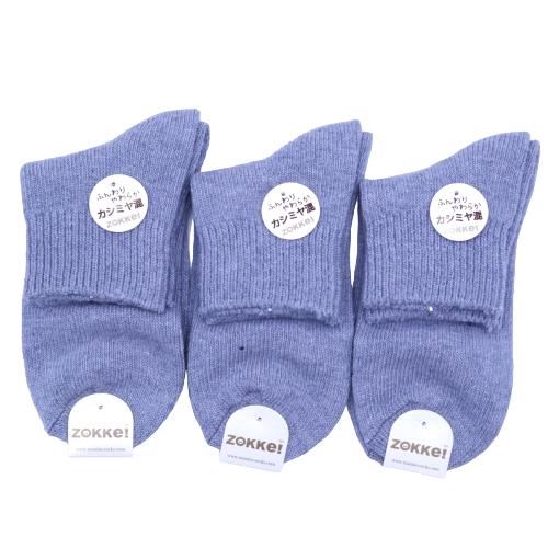 【送料無料】 クルー カシミヤ毛混平無地 デニム (23-25cm) (3足セット) / みっとめるへん社