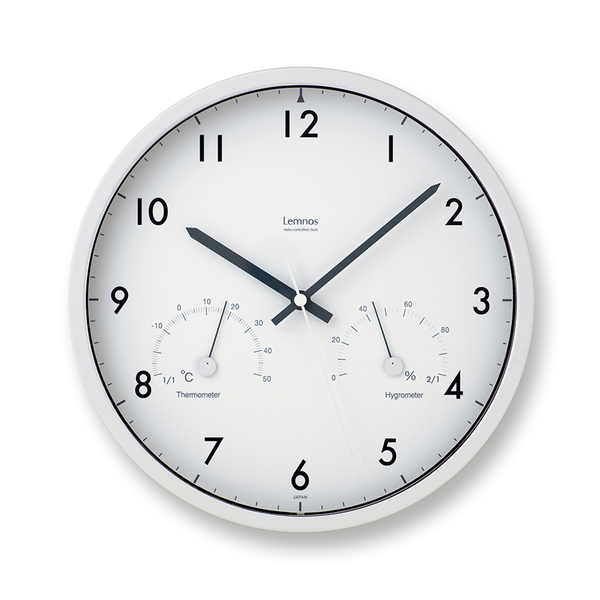 かろやかなデザイン。クリーンでポップなカラーバリエーション。電波時計に温湿度計がついた機能的なクロックです。