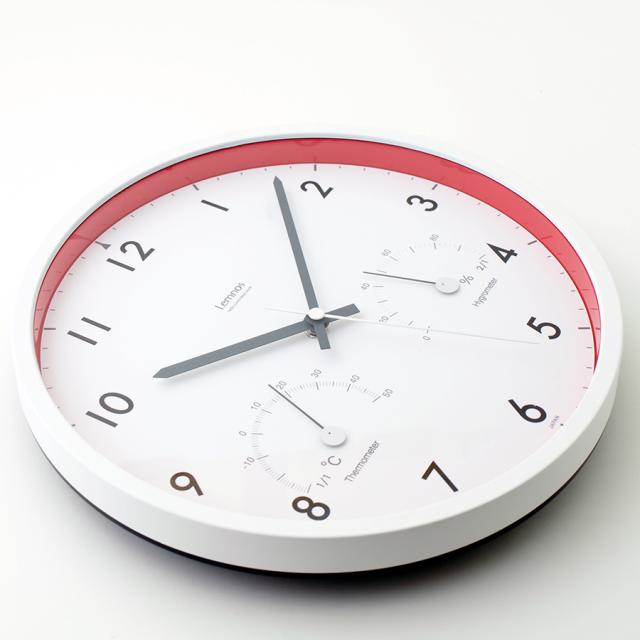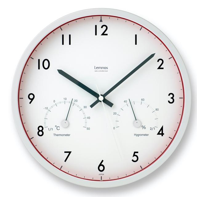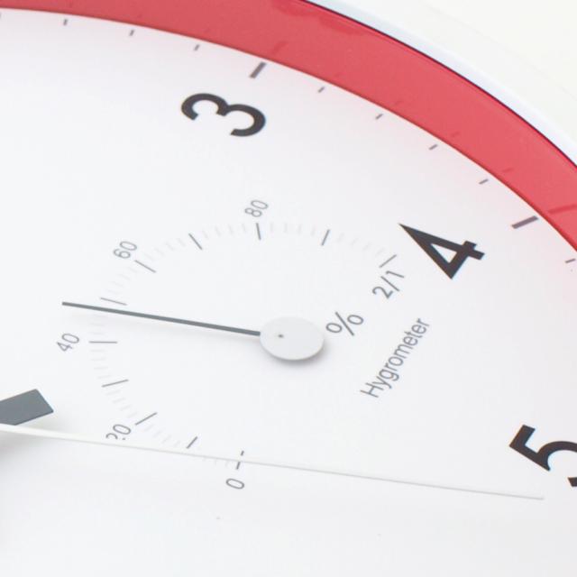 タカタレムノス 掛け時計 カーサ エアークロック 温湿度計付 電波 クオーツ 電池式 レッド スイープセコンド LC09-11WRE