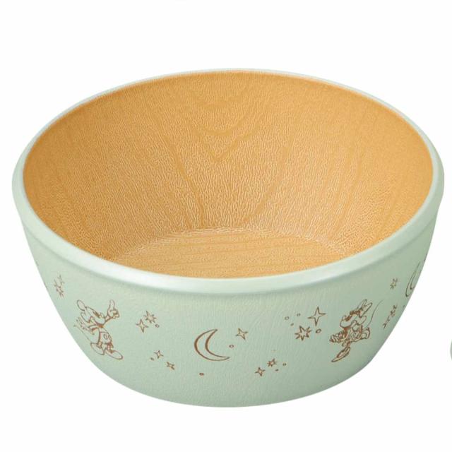 外側の淡い色合いと内側が木目調カラーが優しく調和されていて毎日使いに飽きがこないです。深さがあるのでサラダや果物に適しています。