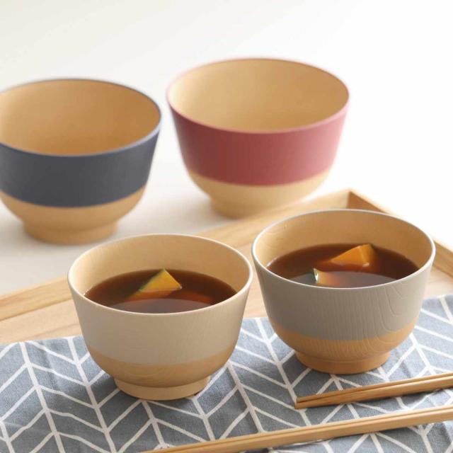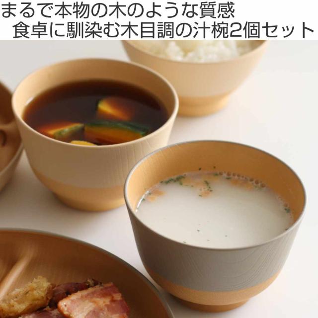 茶碗 330ml やさしい彩り 抗菌 汁椀 2個入 ( 日本製 電子レンジ対応 食洗機対応 味噌汁碗 11cm 椀 お椀 おしゃれ かわいい 抗菌加工 スープ 味噌汁 木目調 軽い 割れにくい 子ども 介護 )