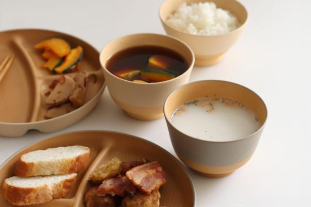 ![]() 抗菌飯椀・汁椀セット きなり色 | ![]() 抗菌汁椀2個入り あま色/きなり色 |