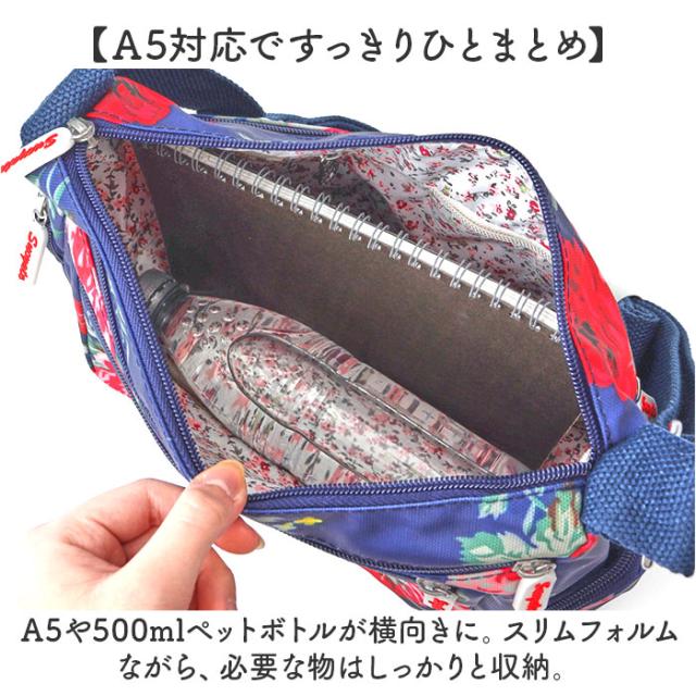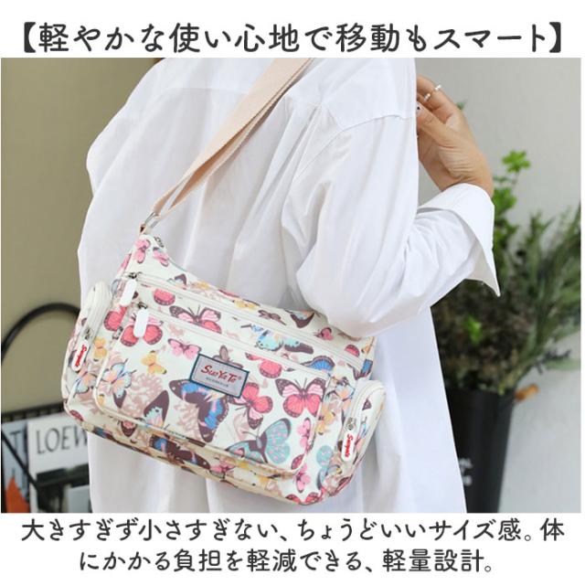 | 商品説明 | 【使い勝手が良くアクセントにも】 ・全面プリント柄が印象的♪サッと持ち出せて、色んなシーンで大活躍の「ショルダーバッグ」。 【軽やかな使い心地で移動もスマート】 ・大きすぎず小さすぎない、ちょうどいいサイズ感。体にかかる負担を軽減できる、軽量設計。 【落ち着いた色合いとデザイン】 ・派手に際立ちすぎることのない、上品なプリント柄。年代問わず使いやすい仕上がり。 【肩掛けできてストレスフリー】 ・長さ調節可能なショルダーベルトを使って、肩掛けや斜め掛け。アクティブシーンでも快適◎ 【開閉スムーズ、安心のファスナー式】 ・ガバっと開くファスナー式。ファスナーを閉じれば中身の飛び出しをガード。 【A5対応ですっきりひとまとめ】 ・A5や500mlペットボトルが横向きに。スリムフォルムながら、必要な物はしっかりと収納。 【サクッと取り出せる8ポケット】 ・合計8個のポケットを配置。細々した物も、バッグの中で探す手間なく、迷子知らず。 【ちょっとの雨なら大丈夫】 ・表面は汚れや水滴を弾きやすい、撥水加工済み。お手入れも拭き取るだけ。 (※)完全防水ではありません。 【お気に入りを選んで相棒に♪】 ・花柄や蝶々などのデザインをラインナップ。ロゴタグやファスナー引き手もポイント。 【ポケット仕様】 ・内側:ファスナーポケット×1、オープンポケット×2 ・前面:ファスナーポケット×2 ・サイド:ファスナーポケット×2 ・背面:ファスナーポケット×1 |