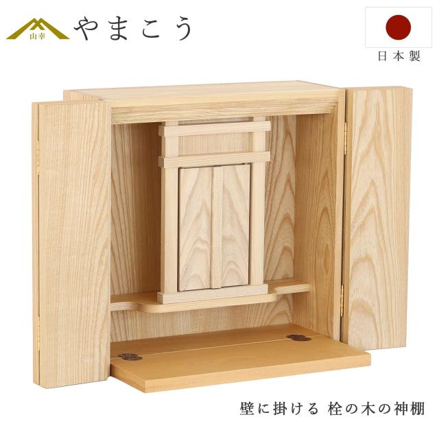 モダン神棚 美しく 壁に掛ける 「栓の木の神棚」 国内 国産 仏壇職人が作る インテリア神棚 薄型 箱宮 (代引き決済不可商品) 神棚 神具 仏具 やまこう 山幸