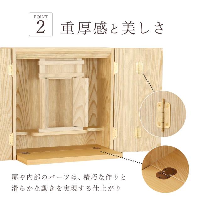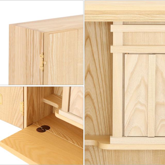 折りたたみ式お供え台:必要な時だけ引き出せる構造で、使わない時はコンパクトに収納。
