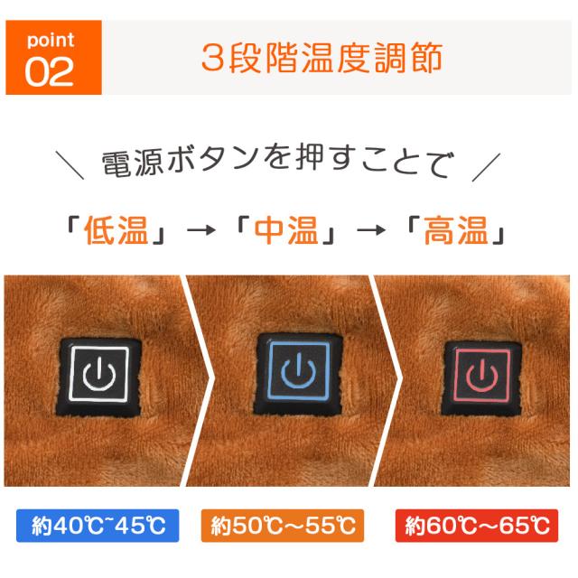 【 最大65℃極暖!冷える足元をポカポカに!!】電源入れて5秒で速暖、冬場の冷えやすい足元を底からじんわりと効率的に暖めます。5分以上使うと膝や体までポカポカ暖かくなる!温度を高温(約60℃-65℃)・中温(約50℃-55℃)・低温(約40℃-45℃)の3段階で切り替えられます。