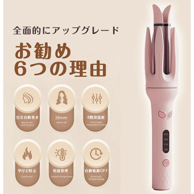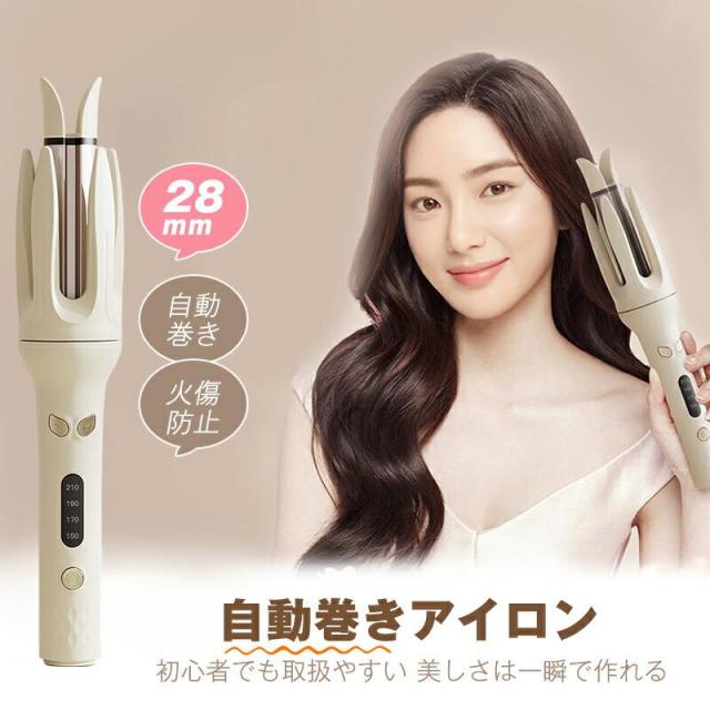 「クーポン配布中」ヘアアイロン 完全自動巻き カール ヘアアイロン オートカール ヘアアイロン 28mm ヘアーアイロン カール 自動カールヘアアイロン 携帯用 持ち運び 旅行 傷まない 自動電源OFF 150℃-220℃ 母の日 プレゼント