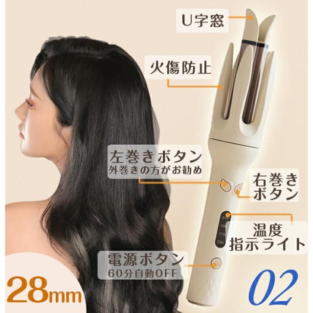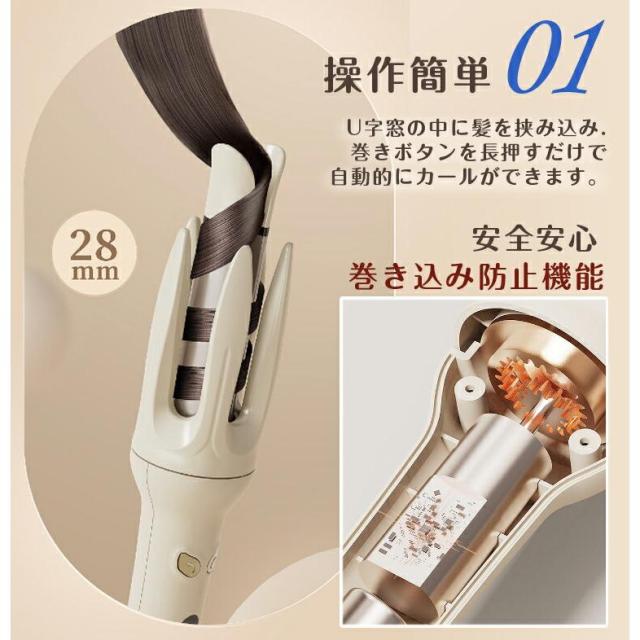 【完全自動巻き】ゆるふわカ一ルを作るのに最適な28mmのコテです。髪の毛を挟んだらあとはお任せ、自動で髪を巻き取って綺麗なカ一ルに仕上げてくれます。