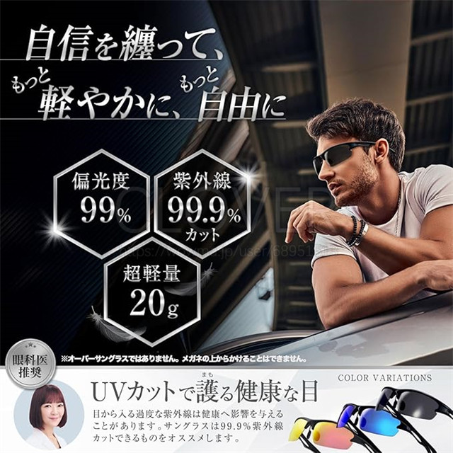 [超軽量 × アジアンフィット] 紫外線99.9%カット UV400 運転用サングラス 偏光