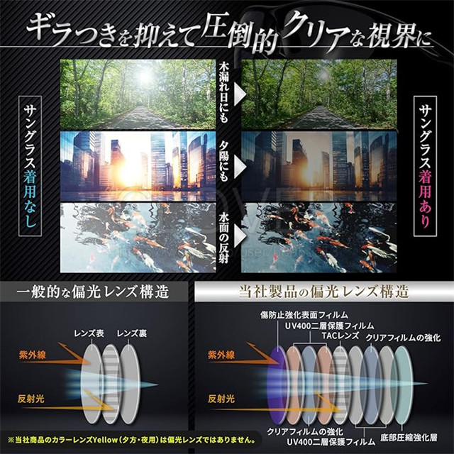 ※イエローレンズのみ偏光レンズではありません。