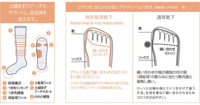 住商モンブランのソックス、抗菌消臭加工を付与、立体構造による機能的なサポートが、最高の履き心地を生み出す。つま先、かかとをしっかり補強したソックスタイプ。