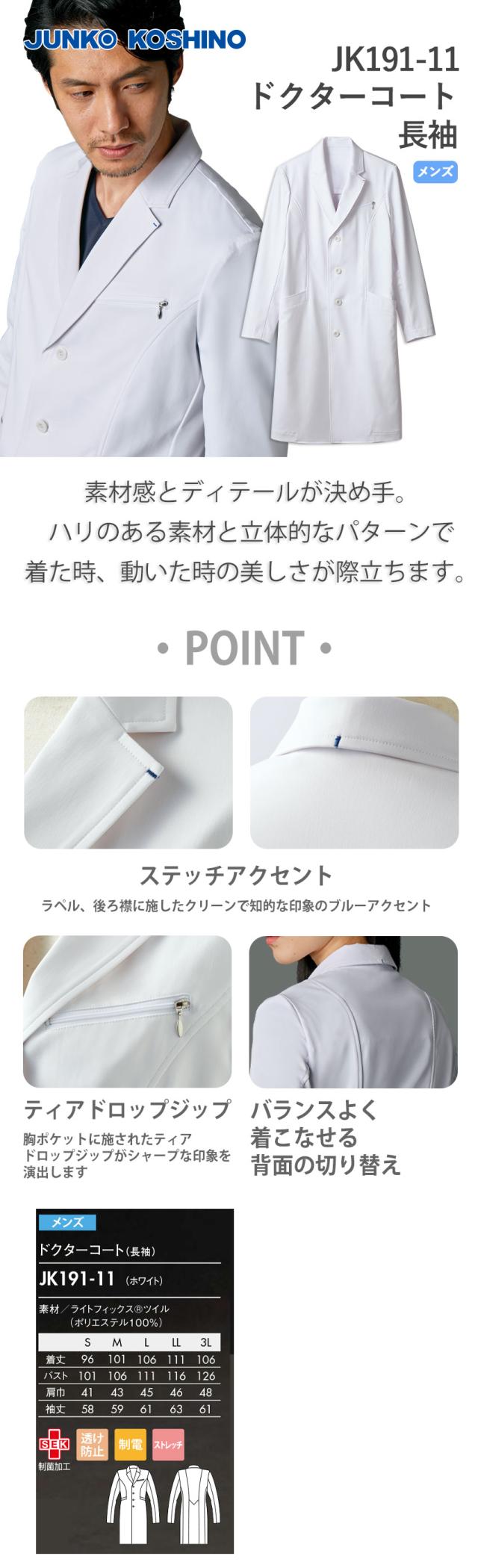 ドクターコート 白衣 メンズ 男性用 住商モンブラン ドクターブレザー 長袖(男性用) JK191-11 医師 薬剤師 医療 制服 ユニフォーム 病院 おしゃれ かっこいい プロ仕様