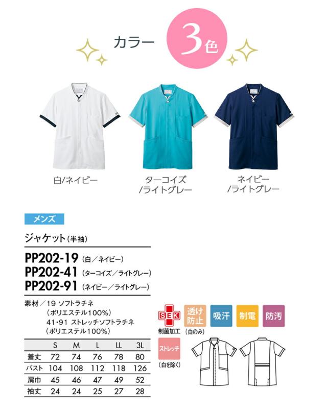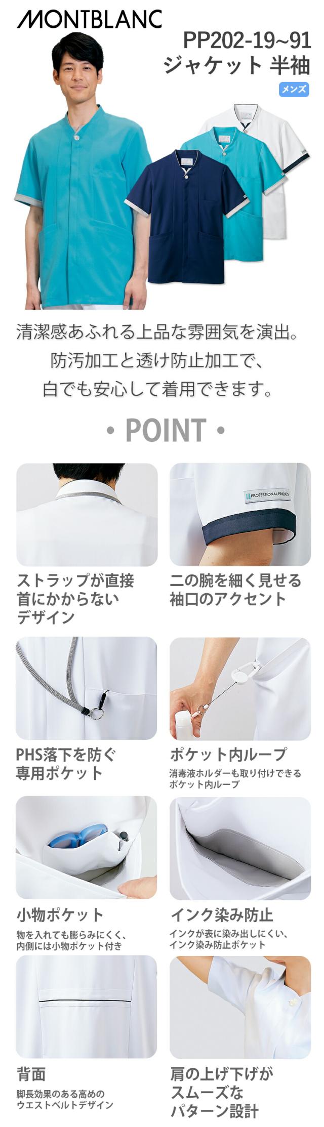 ケーシー 白衣 ジャケット メンズ 男性用 住商モンブラン ジャケット 半袖(男性用) PP202-19、PP202-41、PP202-91 医療 制服 ユニフォーム 医者 医師 看護師 ナース 病院 横掛 おしゃれ かっこいい 動きやすい