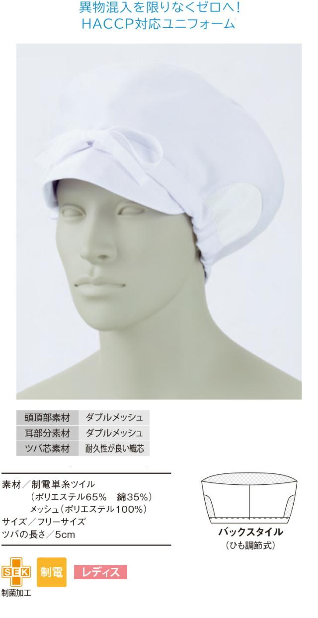 衛生帽 衛生キャップ 衛生帽子 キャスケット 食品衛生白衣 衛生衣 住商モンブラン レディス帽 リボン付 9-024 食品工場 食品加工 制服 ユニフォーム 安い コンパクト