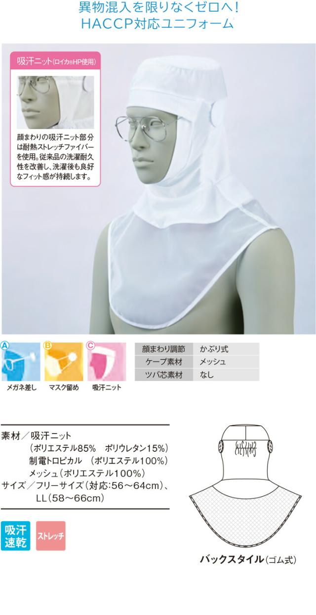 メガネ差し、マスク留め、吸汗ニット、メッシュケープ、後部ゴム式