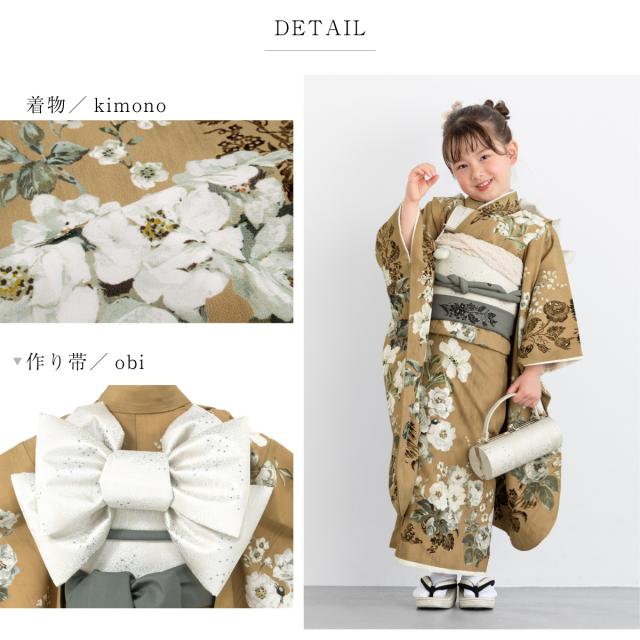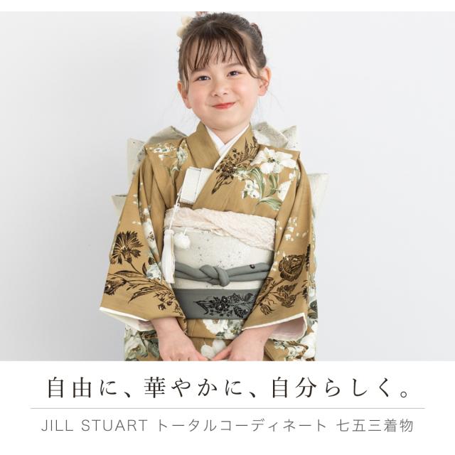 着物セット 七五三 女の子 着物 販売 7歳 七歳 薄茶 ブラウン 白 ジルスチュアート 和服 和装 作り帯 草履 バッグ セット 仕立て上がり 送料無料