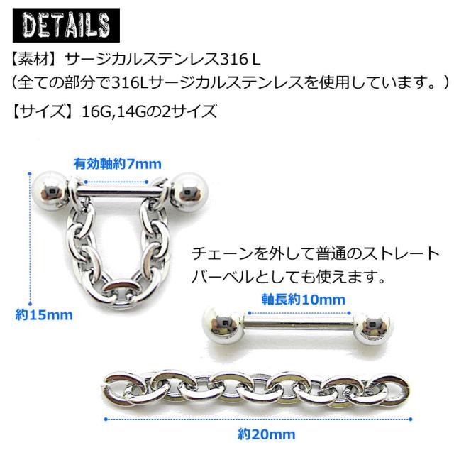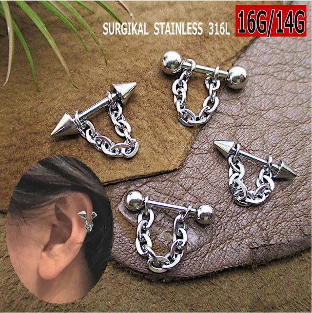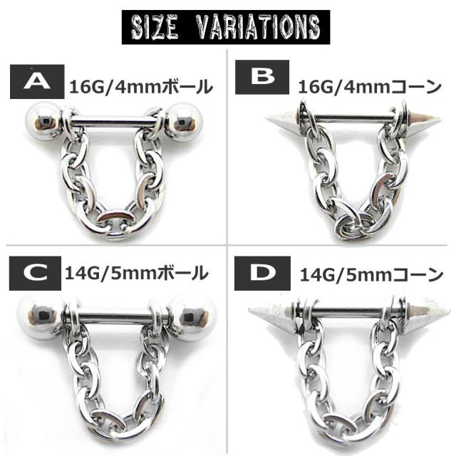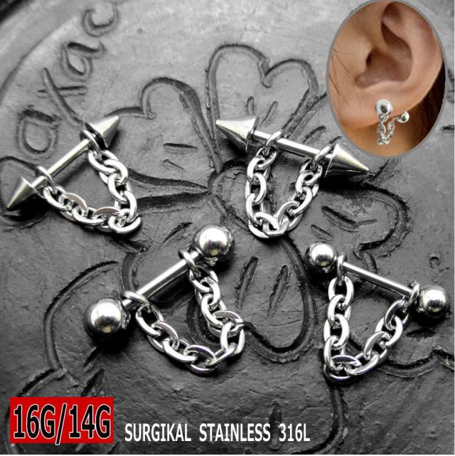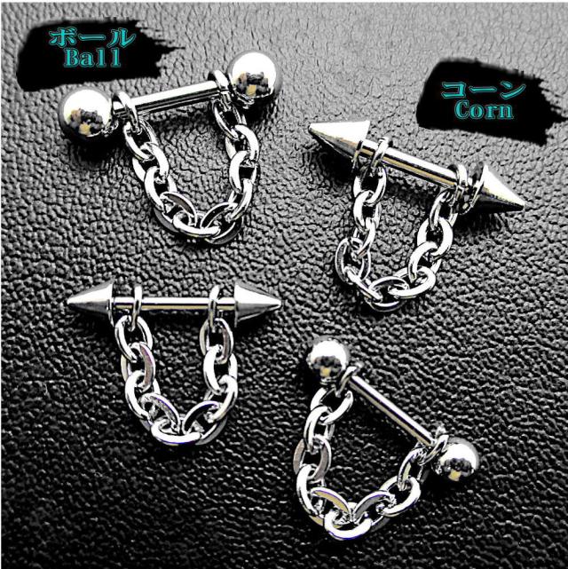 チェーン付き ストレート バーベル 16G 14G 16ゲージ 14ゲージ チェーン ボディピアス へリックス トラガス イヤーロブ 眉 ボール コーン bp1211