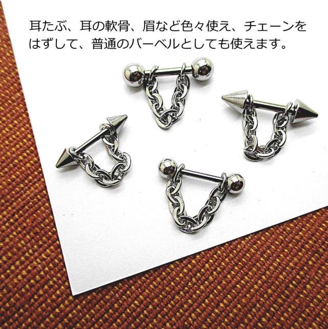耳たぶ、耳の軟骨、眉など色々使え、チェーンをはずして、普通のバーベルとしても使えます。