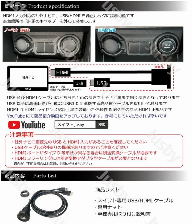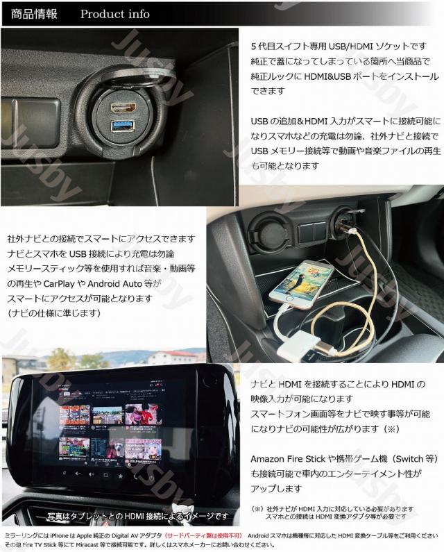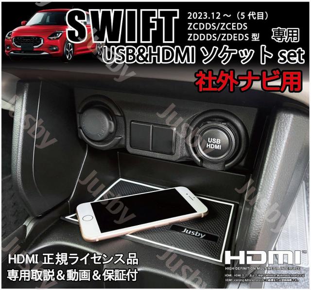 新型スイフト 5代目 社外ナビ用USB/HDMIソケット or DUAL USBソケット カーナビ HDMI入力 ミラーリング 充電 通信 HDMI USB アダプタ SWIFT SUZUKI用