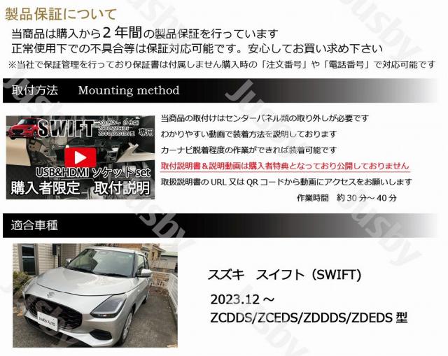 5代目スイフト(ZCDDS/ZCEDS/ZDDDS/ZDEDS型/2023.12〜) 社外ナビ用 USB/HDMIソケット or DUAL USBソケットセットです。