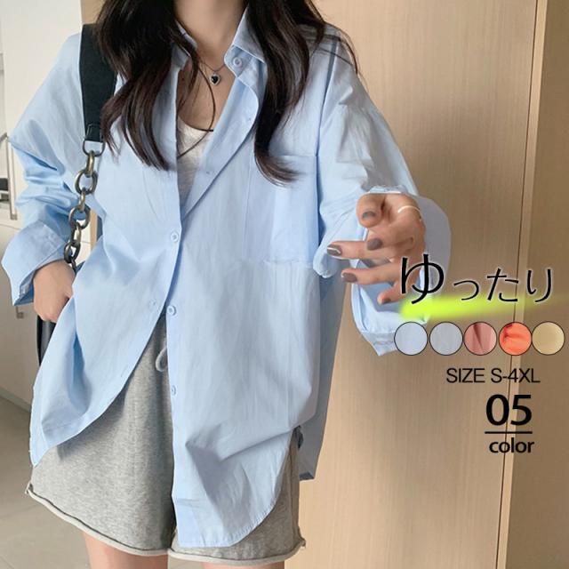 シャツ レディース ブラウス レディースシャツ 長袖 無地 薄手 トップス カジュアル おしゃれ ゆったり 通勤通学