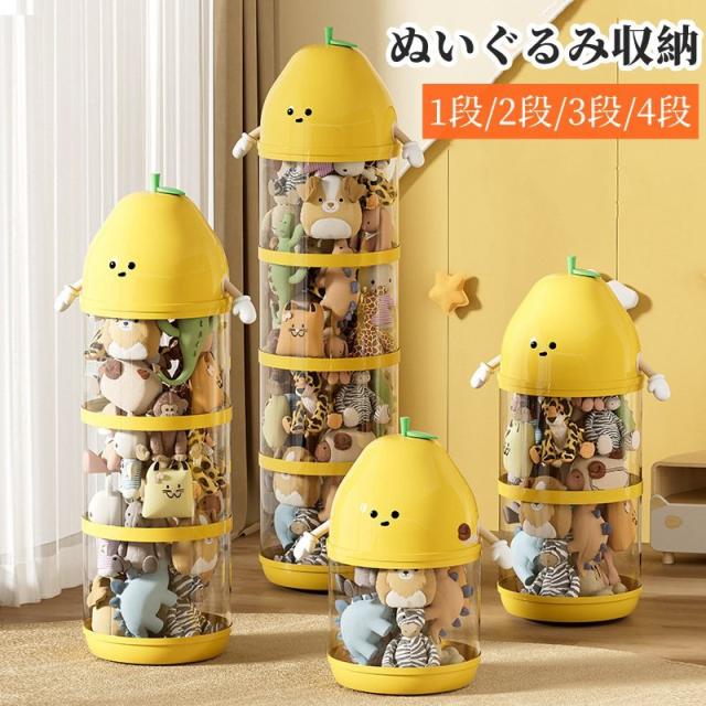 ぬいぐるみ収納 大容量 ぬいぐるみ 収納ケース 収納ボックス 透明 コレクション 陳列棚 陳列ケース DIY 展示ボックス 片付け 整理整頓 透明 クリア かわいい 宅 家 キャラクター おもちゃ 玩具 おしゃれ イエロー 1-4層