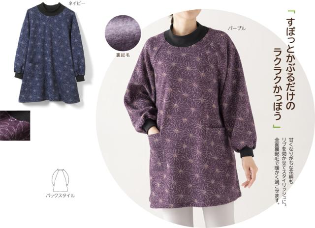 【すぽっ】とかぶるだけのらくらくかっぽう!甘い花柄も黒のリブを効かせてスタイリッ…