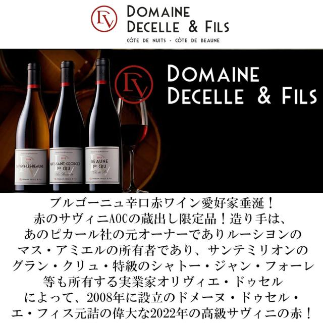 ブルゴーニュ辛口赤ワイン愛好家垂涎!赤のサヴィニAOCの蔵出し限定品!造り手は、あのピカール社の元オーナーでありルーシヨンのマス・アミエルの所有者であり、サンテミリオンのグラン・クリュ・特級のシャトー・ジャン・フォーレ等も所有する実業家オリヴィエ・ドゥセルによって、2008年に設立のドメーヌ・ドゥセル・エ・フィス元詰の偉大な2022年の高級サヴィニの赤!
