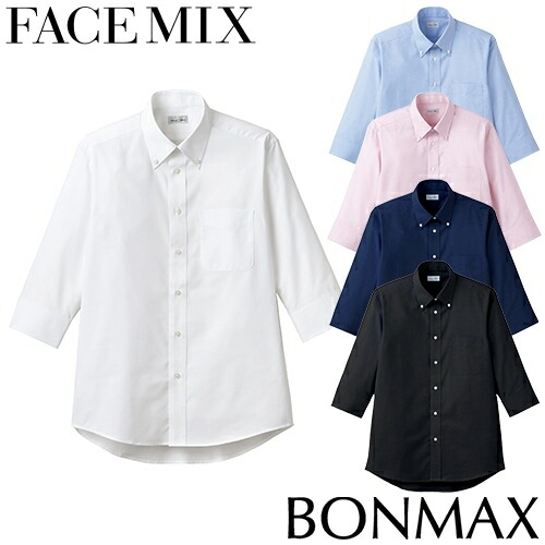 シャツ ワイシャツ FACEMIX フェイスミックス オックスフォード七分袖シャツ FB4555U 飲食店 制服 ユニフォーム メンズ レディース レストラン カフェ おしゃれ かわいい かっこいい