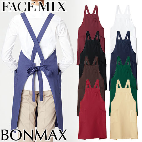 胸当てエプロン X型 たすき掛け クロス FACEMIX フェイスミックス バッククロス胸当てエプロン FK7163 飲食店 制服 ユニフォーム レストラン カフェ おしゃれ かわいい 可愛い かっこいい