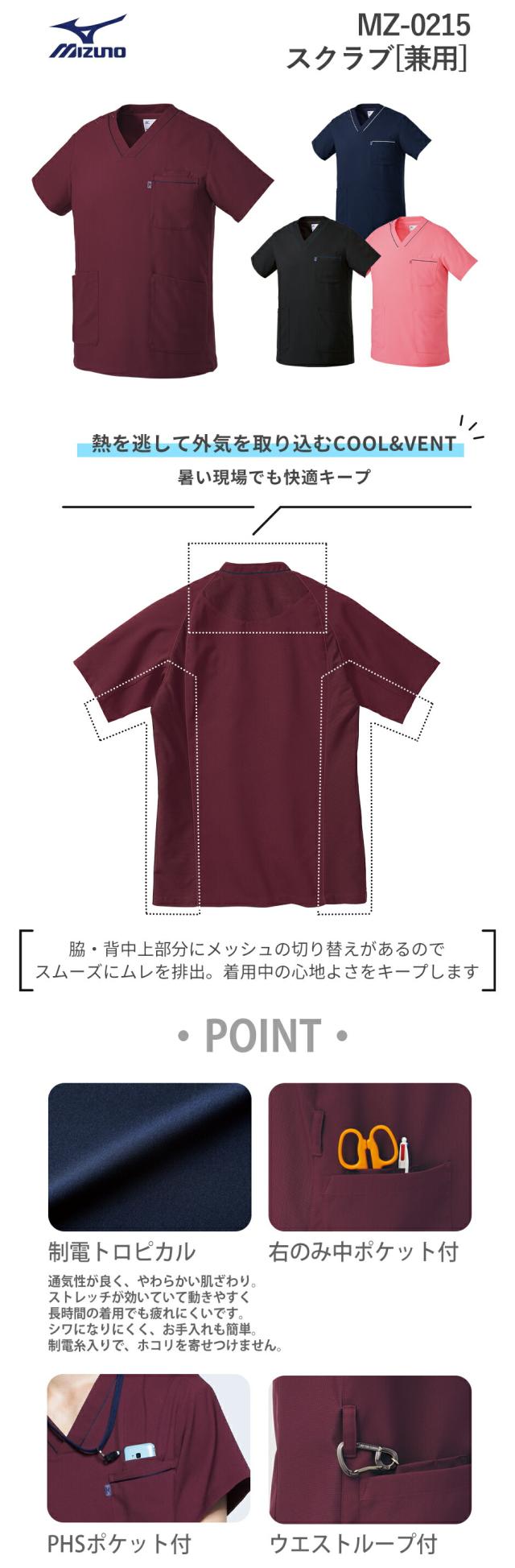 【メール便対応】スクラブ 白衣 医療 ミズノ MIZUNO ユニセックス 男女兼用 半袖 MZ-0215 医師 医者 看護師 ナース 研修医 医療用 人気 手術衣 オペ着 制服 ユニフォーム 抗ウイルス 制電 通気性 病院 クリニック かっこいい 可愛い かわいい おしゃれ 動きやすい
