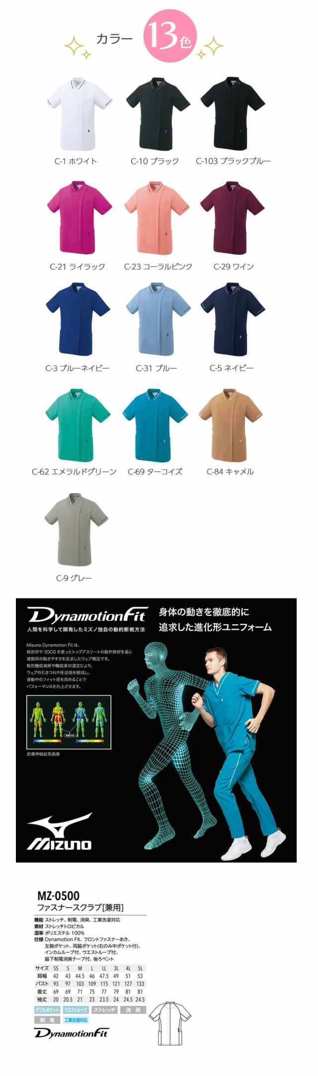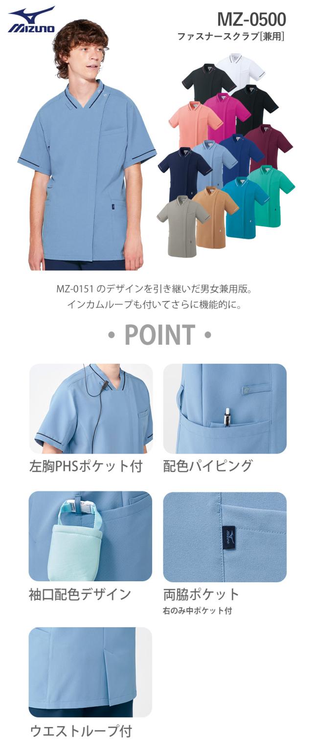 スクラブ 白衣 メンズ レディース 男女兼用 ユニセックス ミズノ MIZUNO ファスナースクラブ[兼用] MZ-0500 医療 制服 ユニフォーム 医者 医師 看護師 ナース 病院 おしゃれ かわいい 可愛い かっこいい