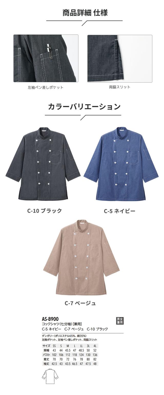 制服 ユニフォーム シェフ 接客 チトセ アルベ arbe コックシャツ[兼用] AS8900 飲食店 厨房服 調理服 レストラン カフェ ベーカリー パン屋 パティシエ おしゃれ かっこいい プロ仕様