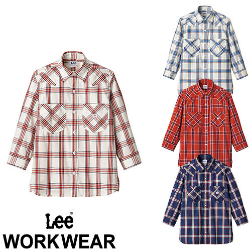 飲食店ユニフォーム レディース レギュラーカラー Lee レディスウエスタンチェック七分袖シャツ LCS43007 七分丈 女性用 制服 レストラン カフェ サービス業 デニム おしゃれ シンプル スタイリッシュ