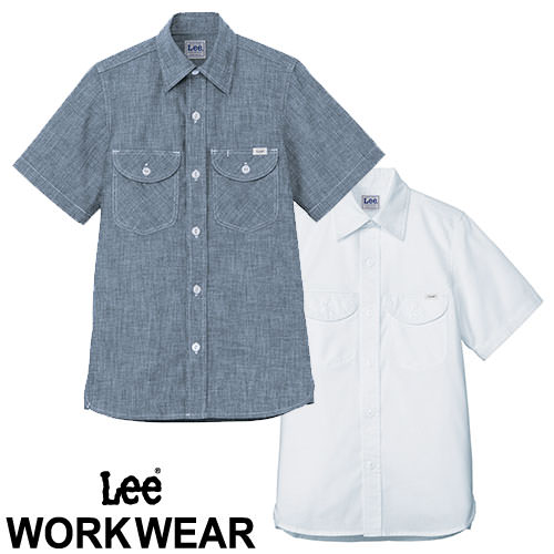 飲食店ユニフォーム レディース レギュラーカラー Lee レディスシャンブレー半袖シャツ LCS43005 女性用 制服 レストラン カフェ サービス業 デニム おしゃれ シンプル スタイリッシュ