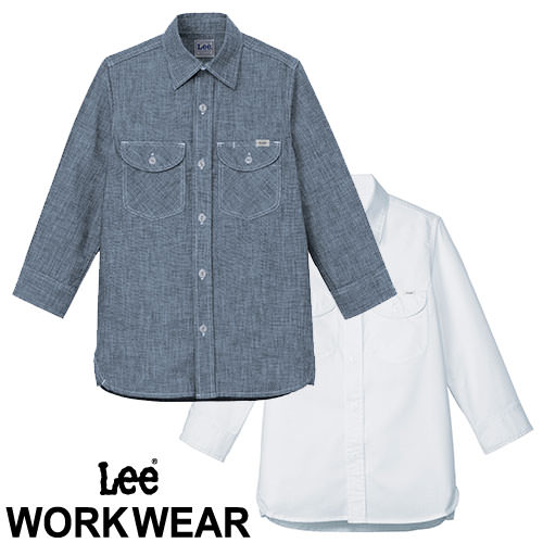 飲食店ユニフォーム レディース レギュラーカラー Lee レディスシャンブレー七分袖シャツ LCS43004 七分丈 女性用 制服 レストラン カフェ サービス業 デニム おしゃれ シンプル スタイリッシュ