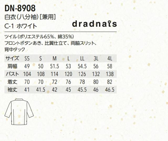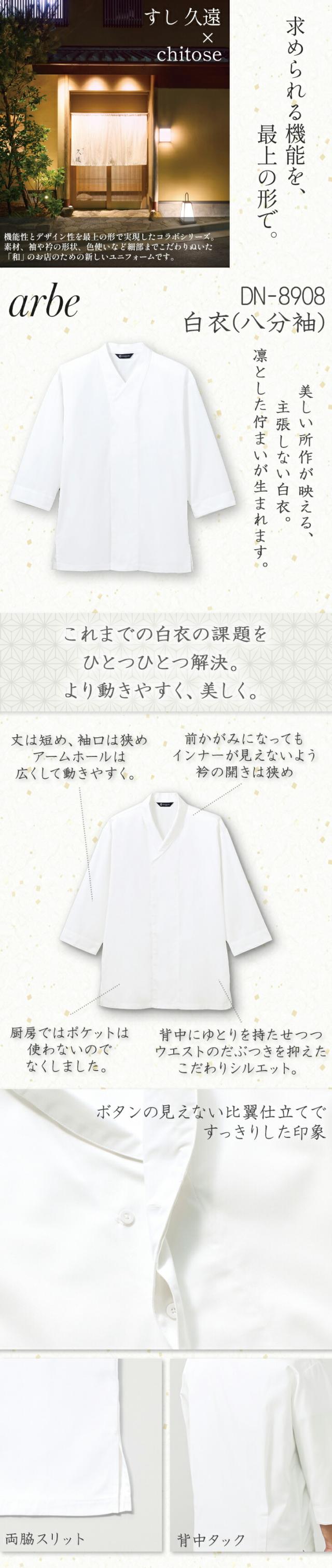 白衣 調理白衣 制服 ユニフォーム チトセ アルベ arbe 白衣(八分袖)[兼用] DN8908 飲食店 厨房服 調理服 寿司屋 和食店 割烹 料亭 居酒屋 おしゃれ かっこいい プロ仕様